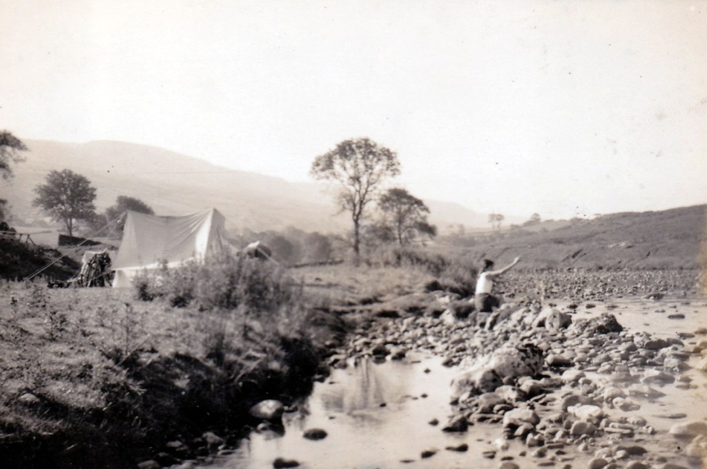 Camping near Kirkby Stephen, summer 1948 (Sheila in river?)