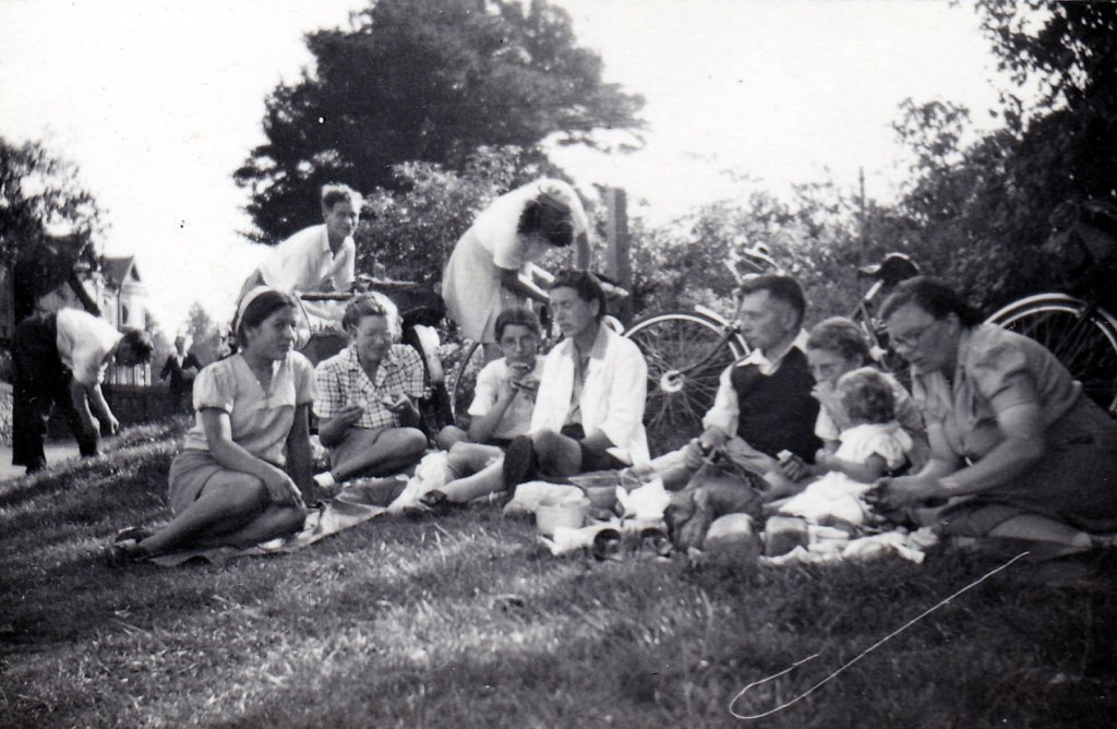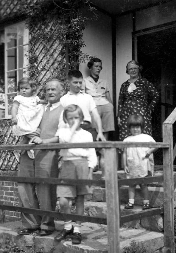 L-R: Sheila, Nell & Jim Wilde, Henry March Wiggs?, Lucy, Ada Glover, Joan, Grandad, Nan & Fred Glover, 1937?