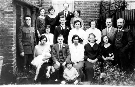 Family group at wedding of Pip and Olive (Hannah’s youngest sister) – probably 1925 (Gwenda on Hannah’s lap)