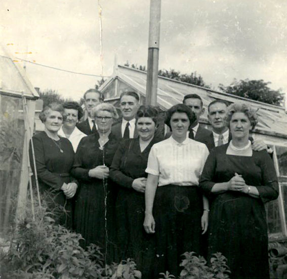 The extended Thomas clan at the family home of 3 Upper High Street, Rhymney, (l-r): Cassie, Megan (Cassie’s daughter), Myrddin, Eliza Jane, Ron, Nancy, Olive, Dorrian, Tom and Bronwen